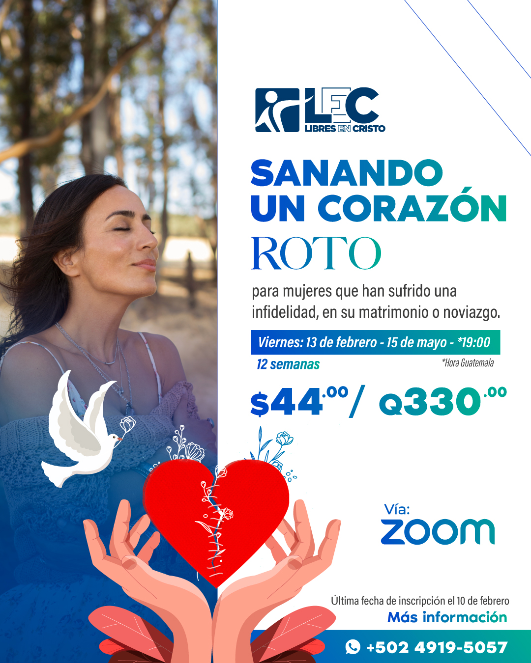 Este curso está dirigido a mujeres mayores de edad (18 años) que vivieron infidelidad en su noviazgo o matrimonio. Es un curso de sanidad emocional y espiritual, el objetivo del curso es trabajar las consecuencias que este pecado dejó desde una perspectiva bíblica.